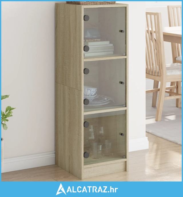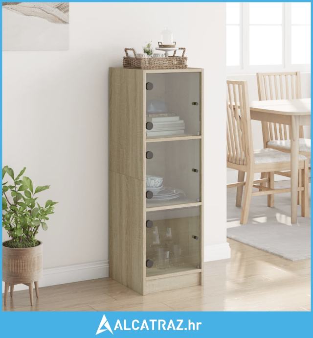 Visoka komoda sa staklenim vratima boja hrasta 35 x 37 x 109 cm - NOVO