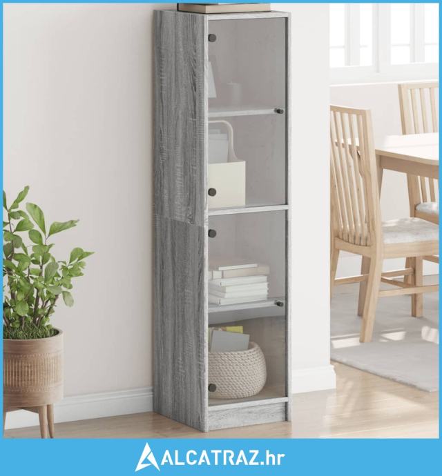 Visoka komoda sa staklenim vratima boja hrasta 35 x 37 x 142 cm - NOVO