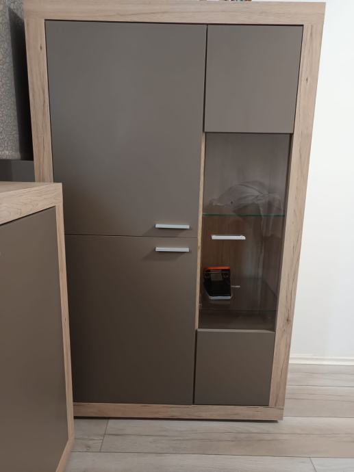 Prodaje se vitrina iz programa "Porta" Prima namještaj, dimenzija 146x90x43cm, stara 3 godine za iznos od 150,00 eura. Trenutna cijena u salonu namještaja iznosi 314,00 eura.