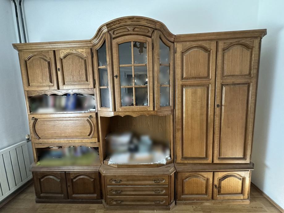 Vitrina/regal u 3 dijela od punog hrastovog drveta.