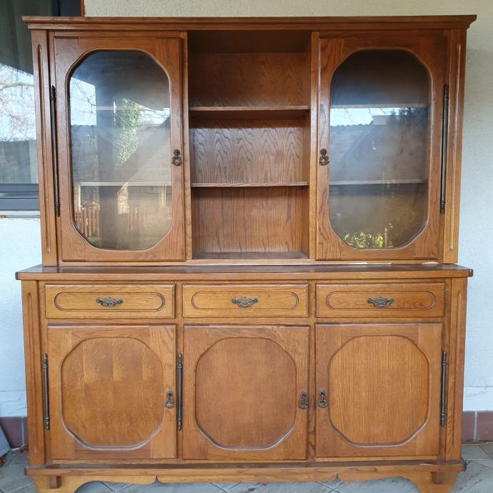 Prodajem uščuvanu vitrinu masiv hrast Bor Novi Marof Gornji dio šir 164 vis 94 d 30,5 Donji dio šir 167 vis 90 dub 49 Ukupna visina 184 cm