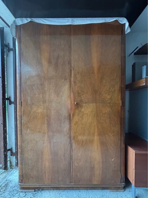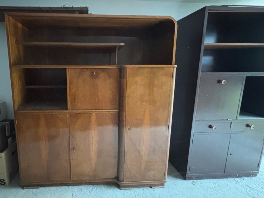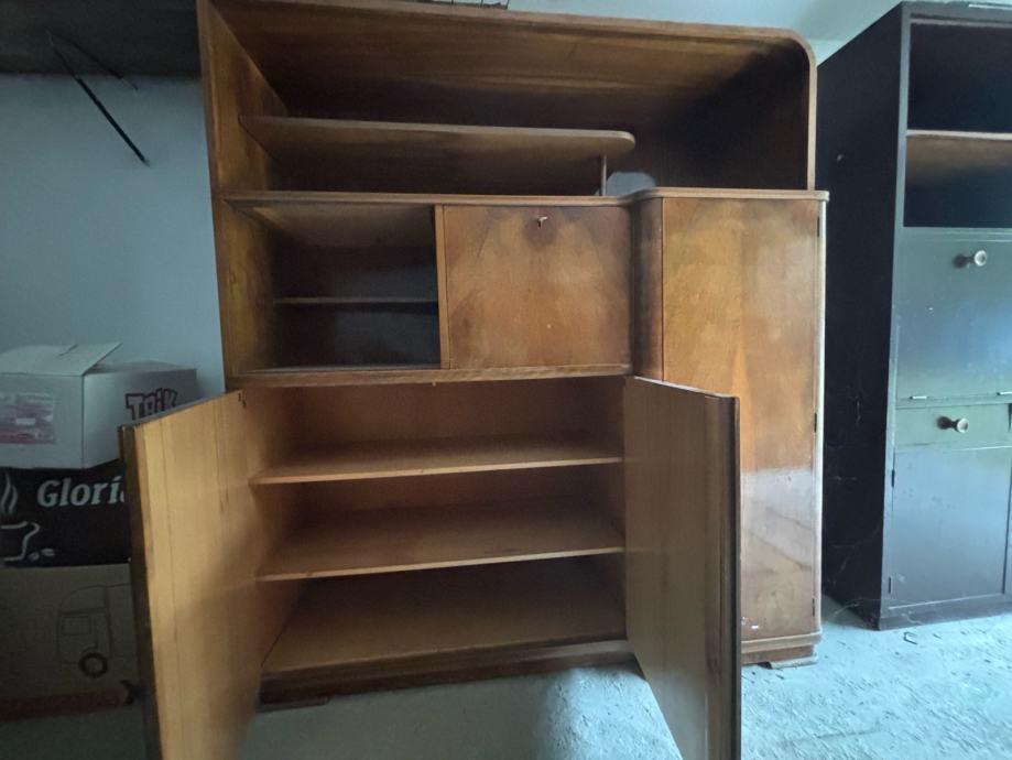 Očuvan komplet namještaja iz 50-ih godina za dnevni boravak - vitrina (sa staklima i barom) i ormar.