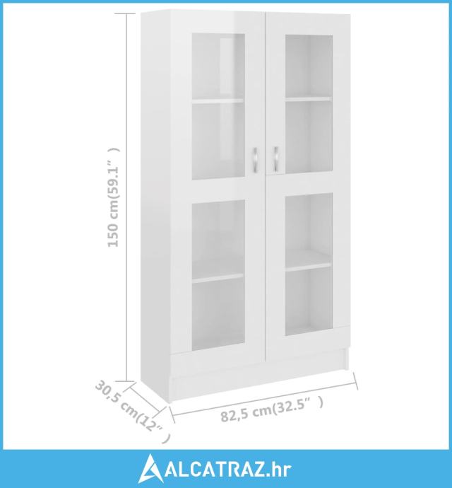 Vitrina visoki sjaj bijela 82,5 x 30,5 x 150 cm od iverice - NOVO