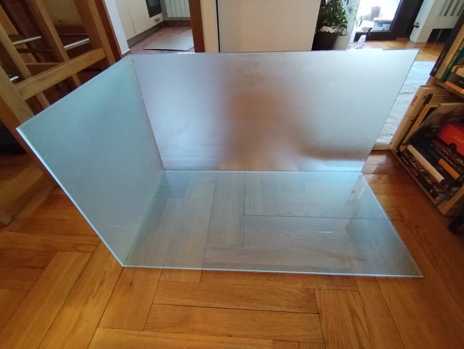 Prodajem zaštitno staklo s tri površine (kao pravokutni akvarij bez jedne dulje i jedne kraće stranice).