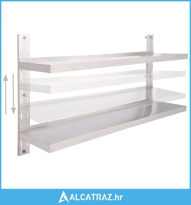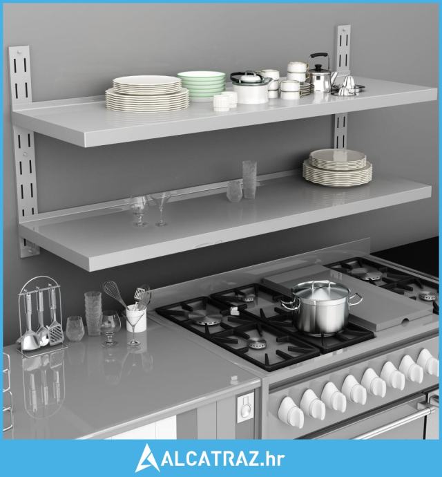 Naše zidne police s 2 razine od nehrđajućeg čelika elegantne su, ali i vrlo funkcionalne te će biti odličan izbor za one kojima je potreban dodatni prostor za pohranu u kuhinji. Predstavljaju savršeno mjesto za čuvanje tanjura, posuđa, kao i raznih drugih kuhinjskih potrepština.