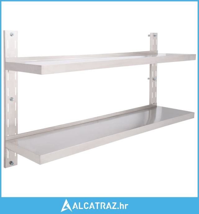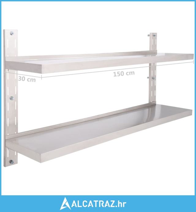Zidne police s 2 razine od nehrđajućeg čelika 150 x 30 cm - NOVO