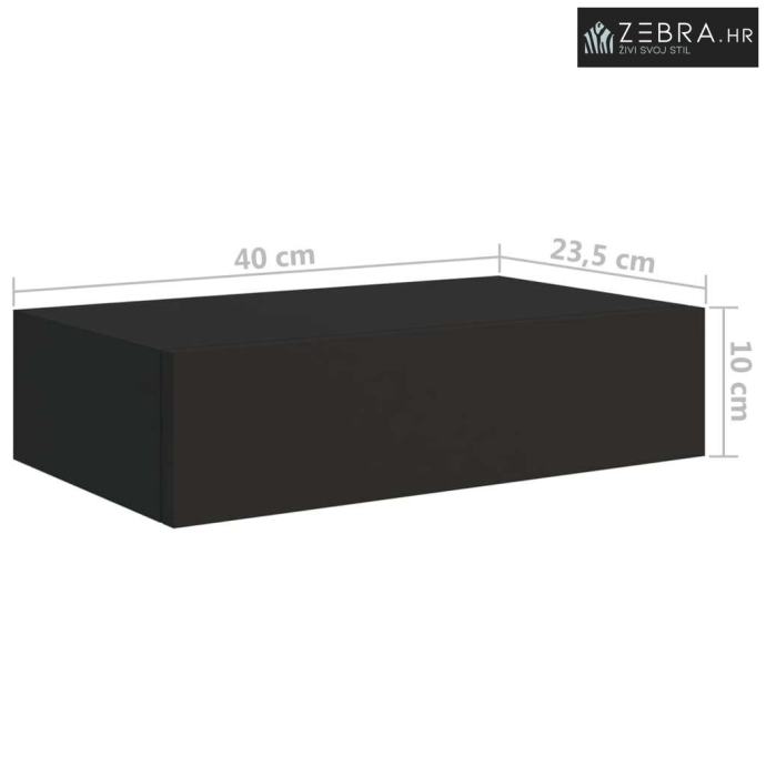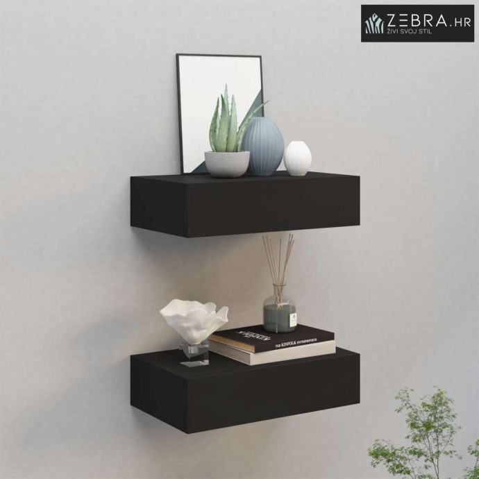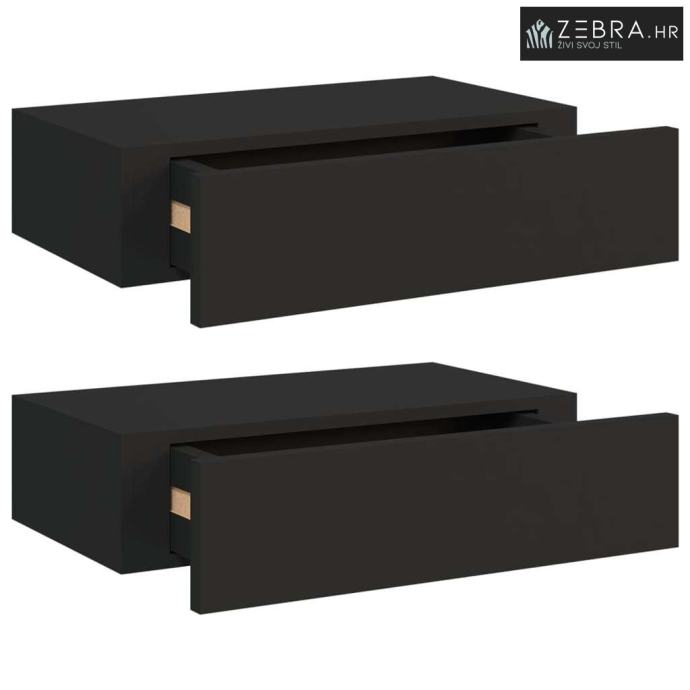 Zidne police s ladicom 2 kom crne 40 x 23,5 x 10 cm MDF - Crna 40 x 23