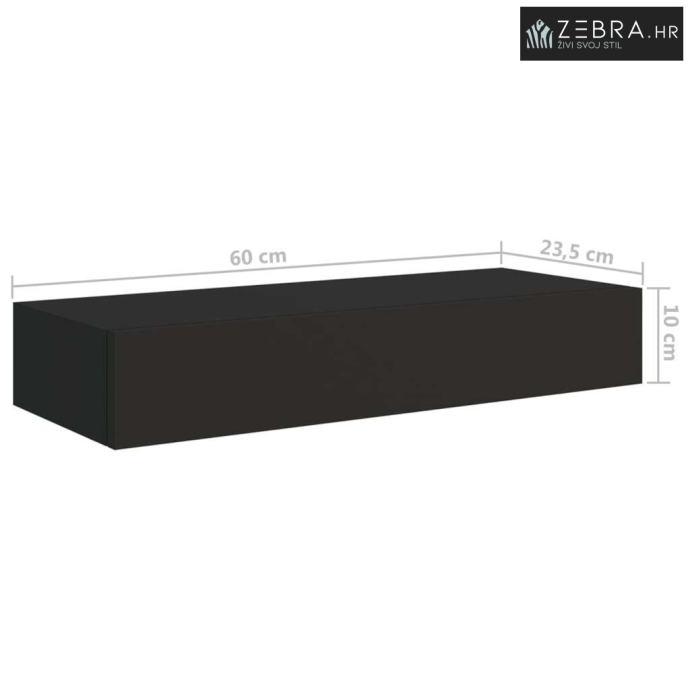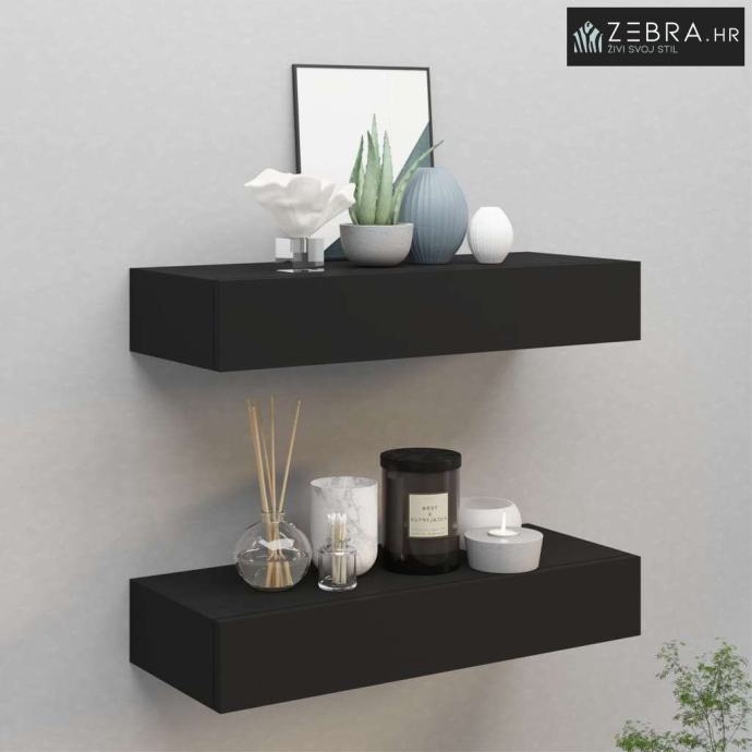 Zidne police s ladicom 2 kom crne 60 x 23,5 x 10 cm MDF - Crna 60 x 23