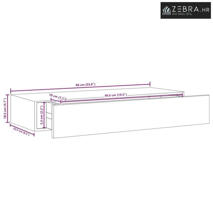 Dimenzije: 60 x 23,5 x 10 cm (Š x D x V)