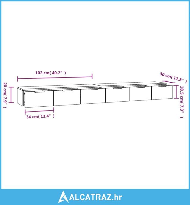 - Dimenzije (svakog): 102 x 30 x 20 cm (Š x D x V)