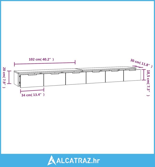 - Dimenzije (svakog): 102 x 30 x 20 cm (Š x D x V)