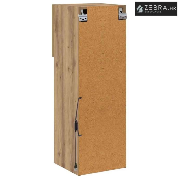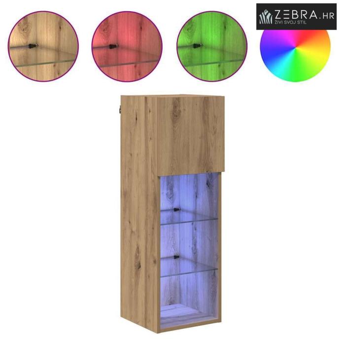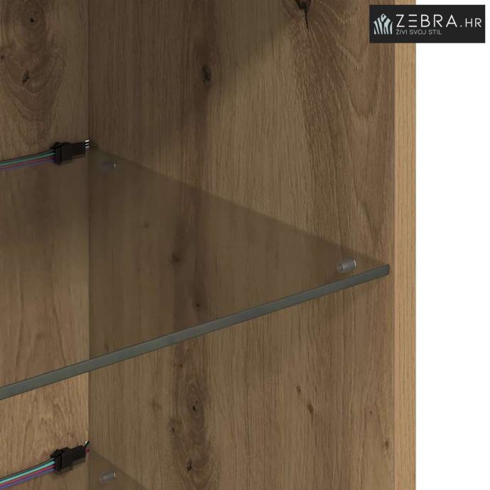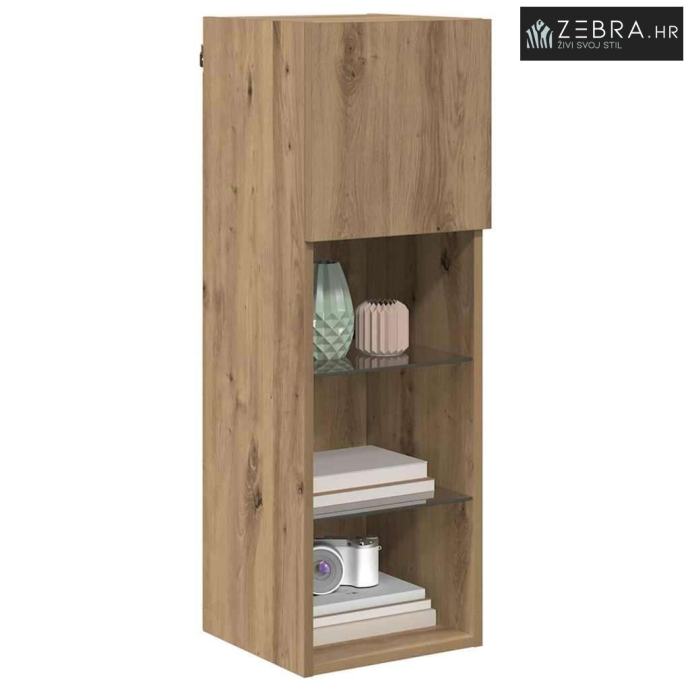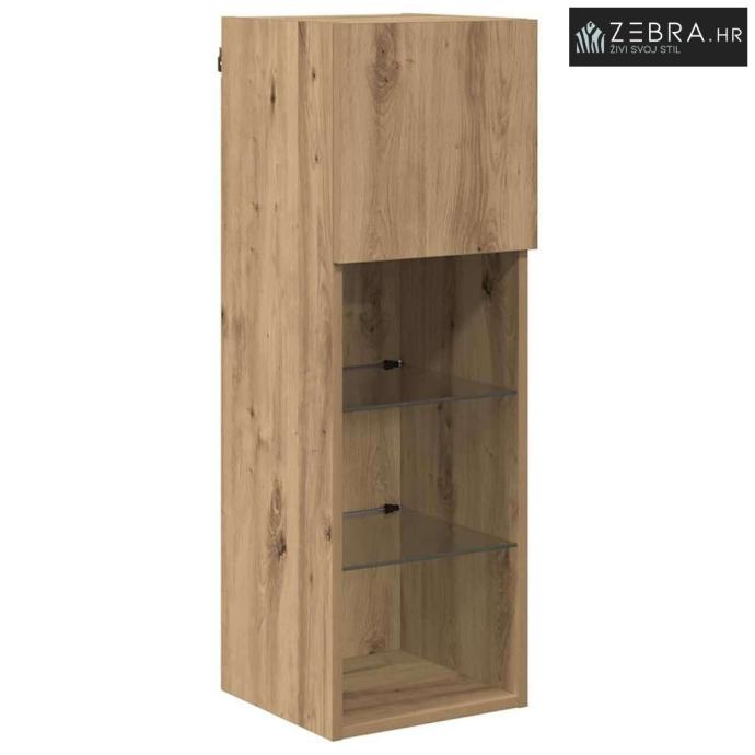 Premium materijali: Ova komoda od konstruiranog drveta ima glatku površinu i čvrstu izradu, osiguravajući dugotrajnost i otpornost na svakodnevno trošenje. Odabrani materijali služe održavanju stilskoga izgleda, savršeno se uklapajući sa staklom. Inovativno osvjetljenje: Ugrađene LED trake s gumbom pružaju prilagodljivu atmosferu. Višebojno osvjetljenje poboljšava atmosferu prostora, dopuštajući korisnicima da prilagode okruženje svojim željama. Pametna rješenja za pohranu: Zidna komoda s policama nudi dovoljno prostora za pohranu medijske opreme, osobnih stvari i dekoracija. Vrata na šarkama od konstruiranog drveta omogućuju lak pristup, dok zadržavaju uredan izgled. Jednostavna montaža: Potrebna su dvije osobe i odvijač, uz jasne upute za jednostavno postavljanje. Pojednostavljuje proces, čineći ga dostupnim korisnicima koji žele DIY pristup. Niska potreba za održavanjem: Jednostavne upute uključuju brisanje suhom krpom i izbjegavanje jakih kemikalija kako bi komoda zadržala svog originalnog izgleda idućih godina. Ovi jednostavni koraci pomažu očuvanju kvalitete, držeći komodu svježom i privlačnom. Boja: Umjetnički hrast