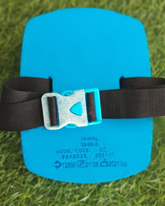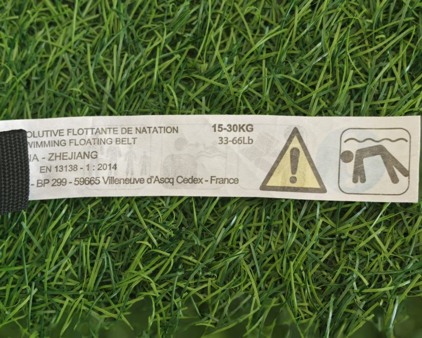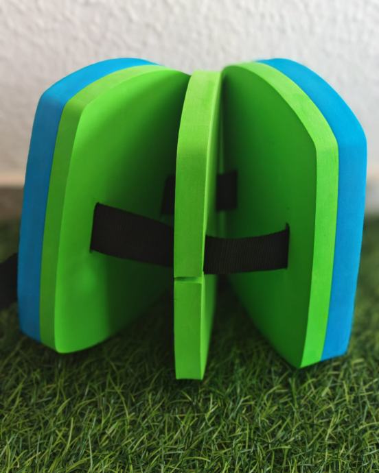 Pojas koji drži dijete na površini vode i daje mu mogućnost da slobodno radi rukama i nogama. Srednji dio se može ukloniti i time smanjiti nosivost plovka. Nema tragova korištenja.