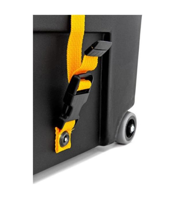 Čvrsti kofer za bubnjarski hardware, s 2 kotača. Dimenzije su (D) 100.30 x (Š) 27.20 x (V) 26.7 cm.