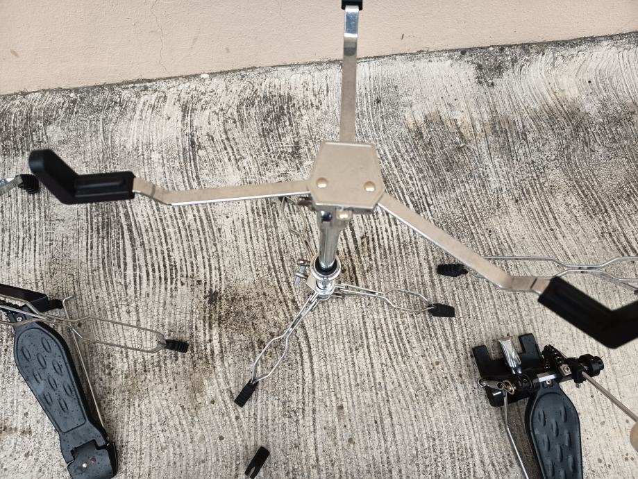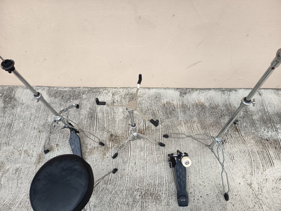Prodajem hardware u kompletu. Sve ispravno, malo korišteno. Hi hat stalak, pedala za bas bubanj, stalak za doboš, stalak za činelu i stolica.