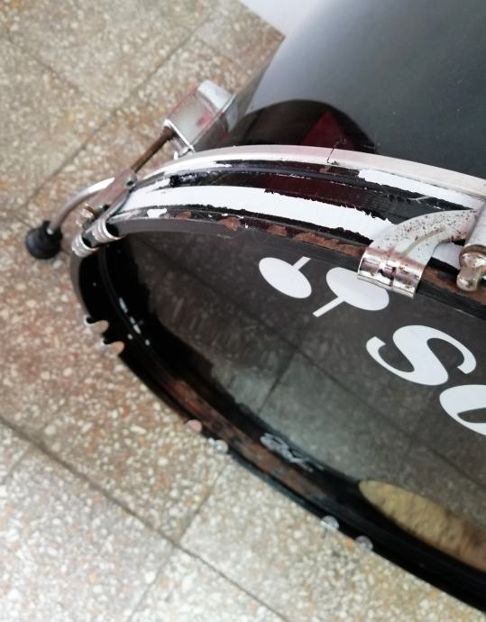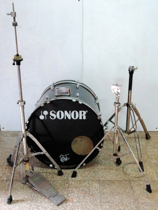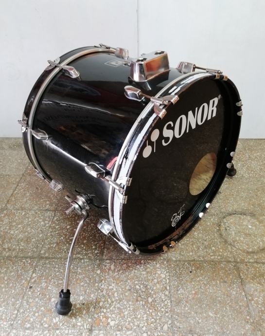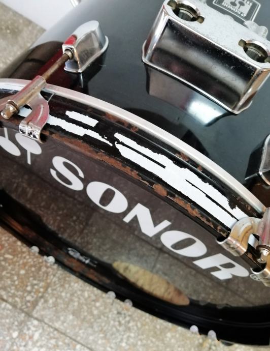 Sonor bas bubanj 503 serija 20 x 16 (potpuno funkcionalan, sa tragovima korištenja na prednjem obruču i unutarnjim clampovima, slike 3-6, opne vrlo dobre) 75€.