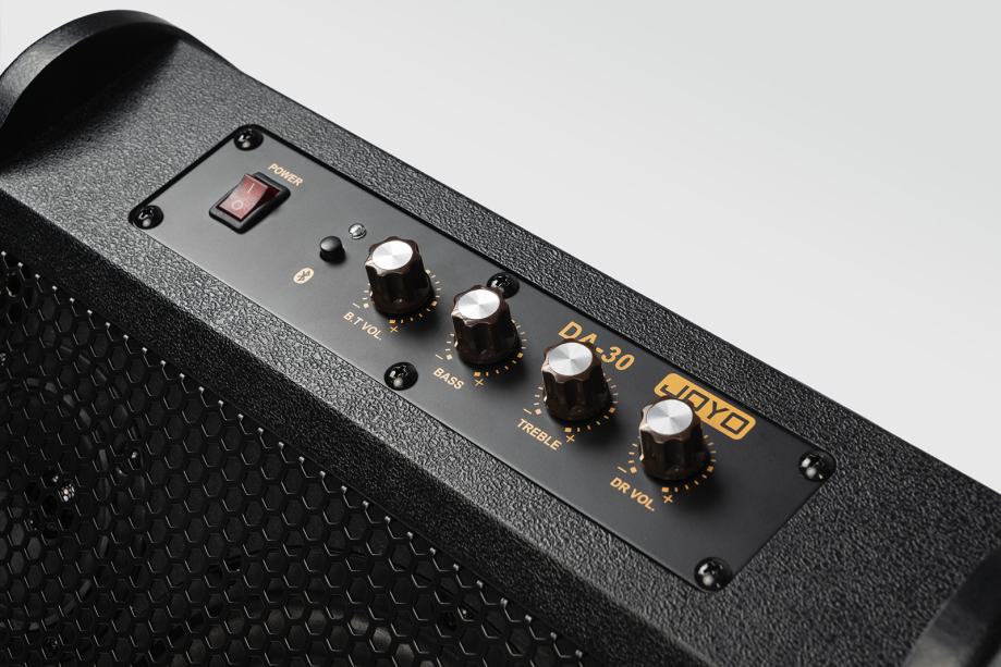 Joyo DA30 pojačalo za bubnjeve. Joyo DA30 kompaktno pojačalo ima 1x 8" bas zvučnik, 1x3" visokotonac, te Bluetooth 4.0 za reprodukciju glazbe. Prikladno je za kućnu upotrebu, lagano i prenosivo.