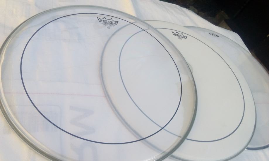 Plastike Remo Pin stripe- 15"_tomovi i 20"za bas kik NOVE (15 eu--25 eu) #REMO Weather King batter clear i bijele sa tockom - fokus i bez nje, dim: 8' ',10",16"18'' i 20'',NE korištene a neke VRLO malo ! Cijena : 7eur - - -20 eur.MOLIM bez SMSa - 091 525 6768