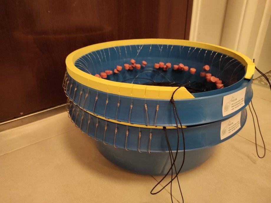Parangal od 100 udica. Osnova 1.5mm konop, pici (pijak) 0.60mm 1,5m, razmak između udica 5m, udica br.10 inox ravna. Na svaki pic ide jedno pluto promjera 15-18mm i na spoj osnove i pica ide olovo rascijepljeno od 10 g.