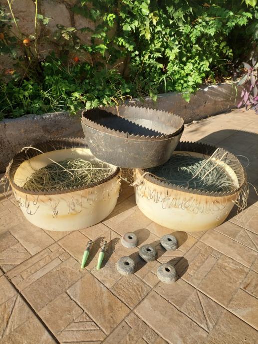 2 PARANGALA PO 100 UDICA (BR.10) I 1 DODATNA PREAZNA KOŠARA ZA PARANGAL SA UTORIMA ZA 100 UDICA.