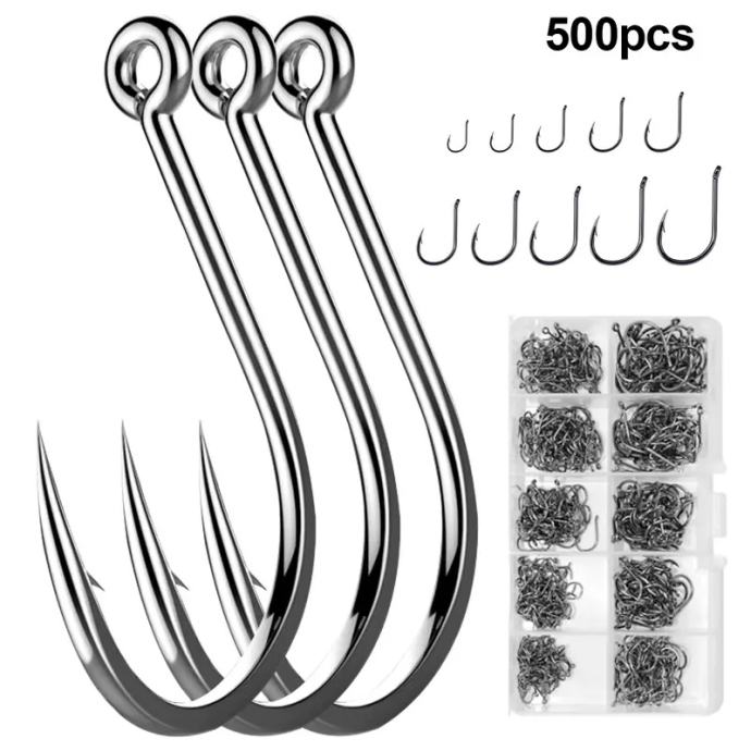 Nudimo vam set od 500 udica za ribolov koji će vam omogućiti da maksimalno uživate u svojim ribolovnim avanturama. Ovaj set dolazi s 10 različitih veličina udica, izrađenih od visokokvalitetnog ugljičnog čelika, što ih čini izdržljivima i pouzdanima u različitim uvjetima ribolova.