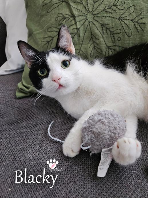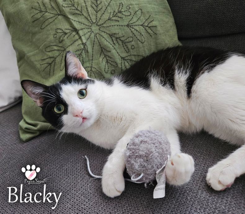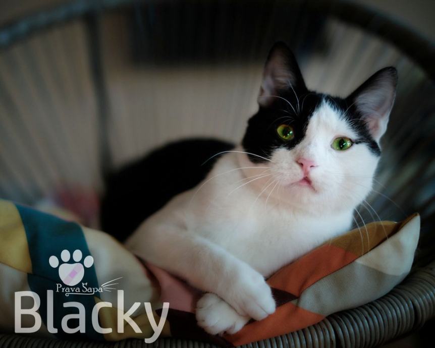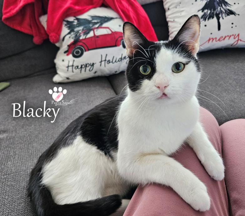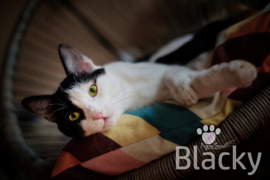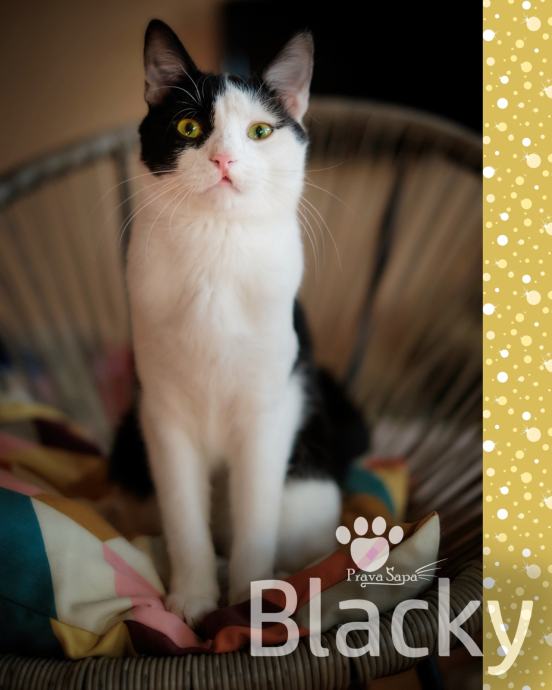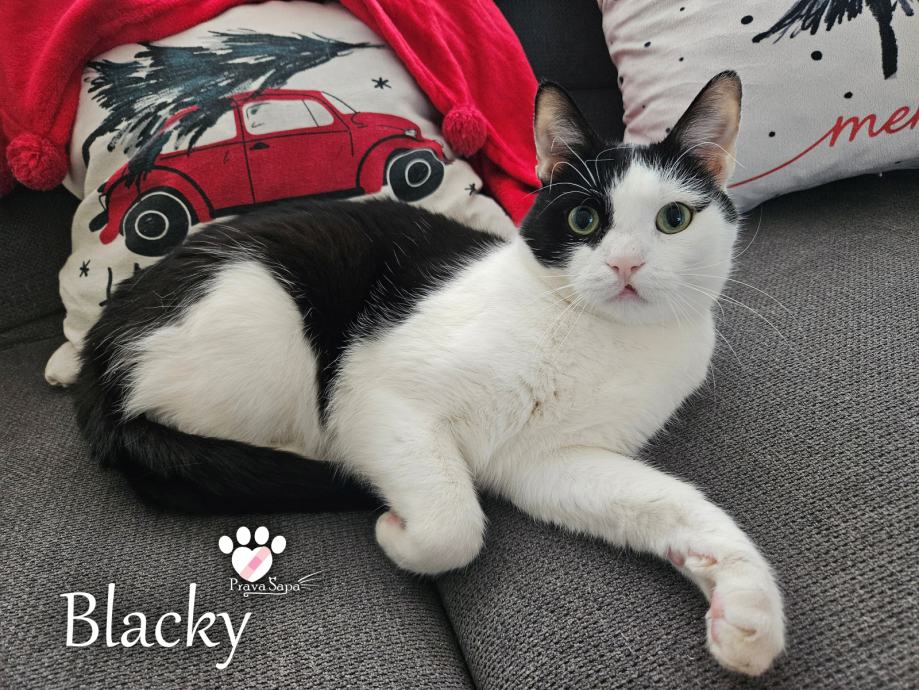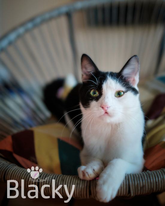 Blacky je postao naš kad je pronađen na livadi uz zgradu, sav polomljen... kasnije smo našli njegovu "skrbnicu", ali ona ga se odrekla u roku par sati, čim je čula koliki su troškovi operacije koja mu je potrebna da bi opet hodao... bila ga je spremna eutanazirati, samo da ne mora platiti rezultat svoje neodgovornosti!