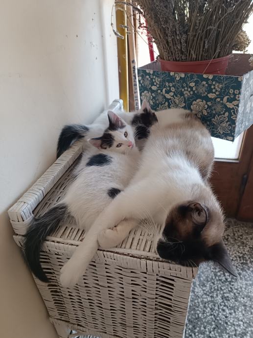 Zdravo! Mi smo dva mala mačića, brat i seka, stara oko 2 mjeseca, nerazdvojni partneri u igri, maženju i predenju koja traže siguran dom.