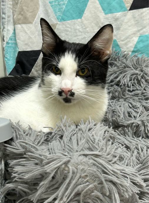 COSMOje crno-bijeli mačić rođen početkom travnja. Mazan, aktivan i zaigran, obožava društvo mačaka i ljudi. Potpuno je zdrav i veterinarski obrađen, navikao na kućni red.