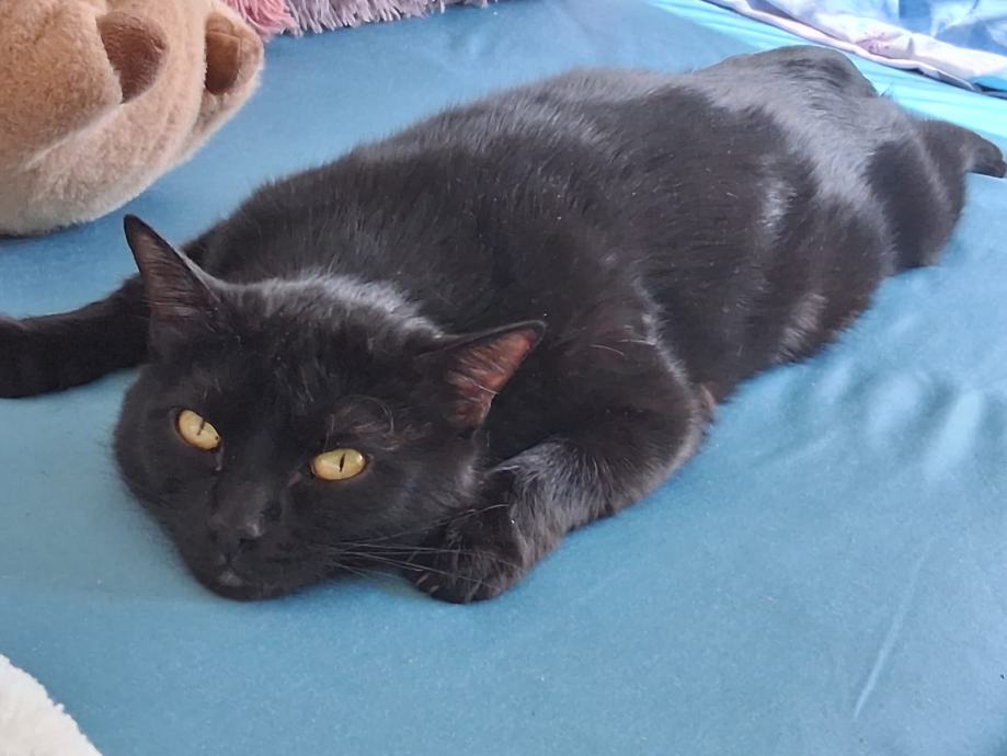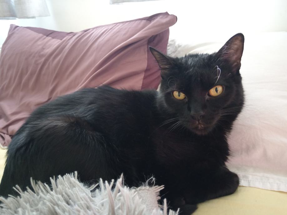 Vjerojatno je križan s Bombajskom mačkom jer je veličinom i izgledom nalik na mini crnu panteru, bakrenih očiju.