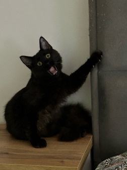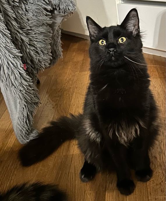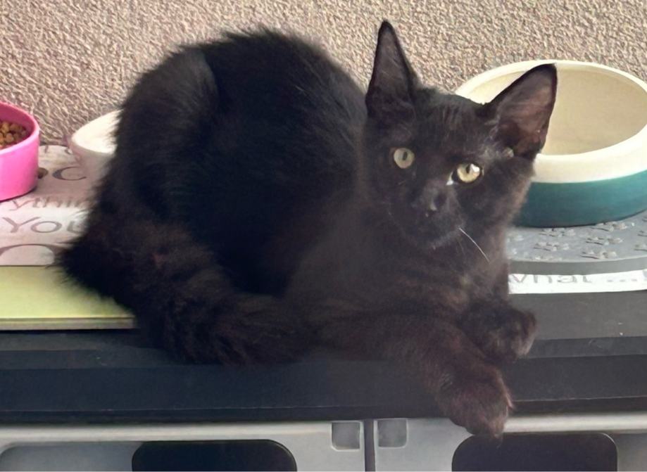 GIZMO je crni dugodlaki mačić sa sivom poddlakom, rođen početkom travnja.