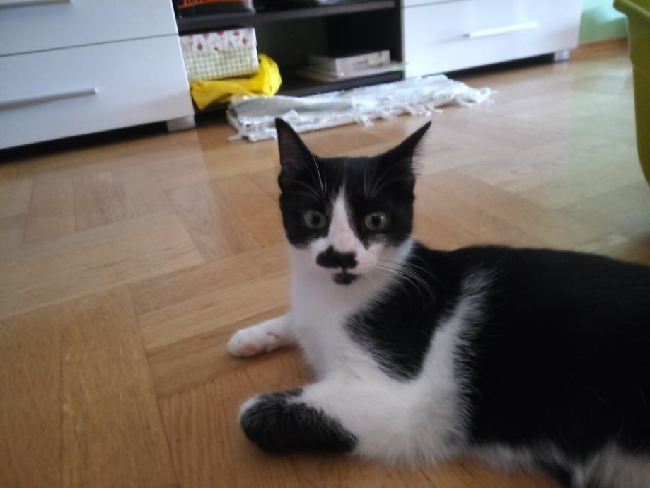 Udomljava se crno-bijela maca, stara oko 10 mjeseci, simpa, mirna karaktera, malo plaha..kastrirana, cijepljena. Idealno da bude u kući s dvorištem, može i u stanu.