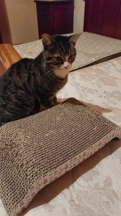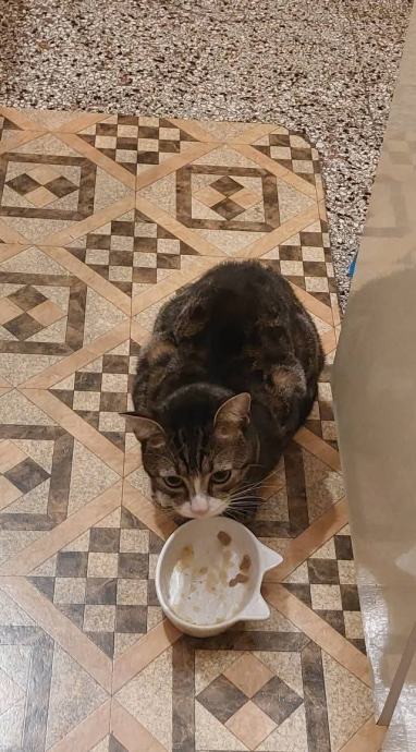 Naučen je na pijesak, uredan je, zaigran, jede uglavnom mokru hranu (vrećice i konzerve)