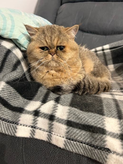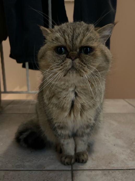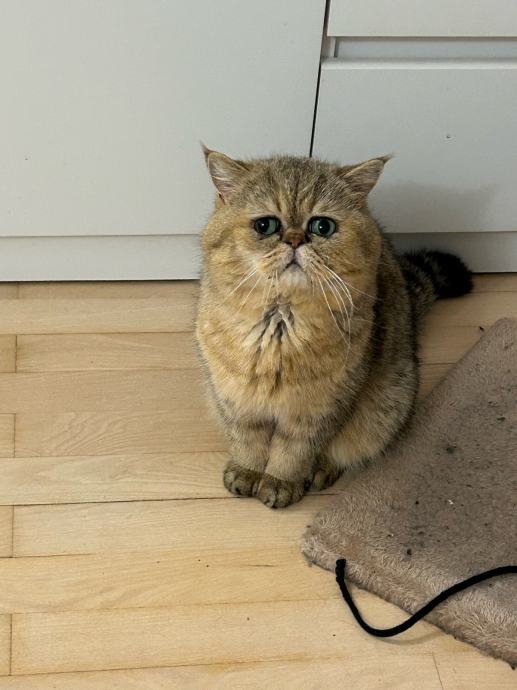 Tražim dobrog čovjeka ili obitelj koji bi udomili ovog prekrasnog mačka. Radi se o egzotičnoj kratkodlakoj mački (Exotic Shorthair) zlatno-smeđe boje s tigrаstim uzorkom. Ima karakteristično spljošteno lice i velike, izražene zelene oči, što je tipično za ovu pasminu. Mirne je naravi, poprilično lijen i naviknut je na život u stanu, kastriran je i nije nikada bježao iz stana.