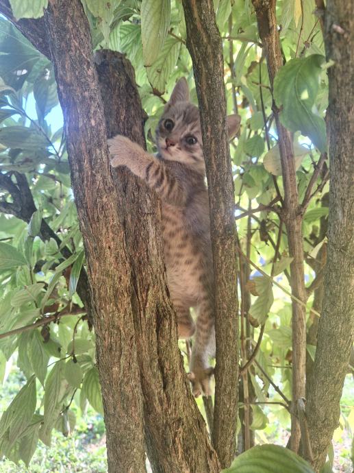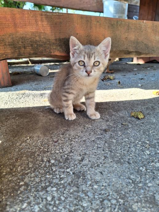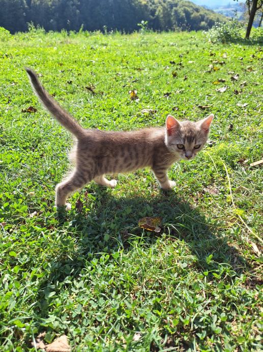 Poklanja se mala maca, stara oko mjesec i pol, naučena na ruke.