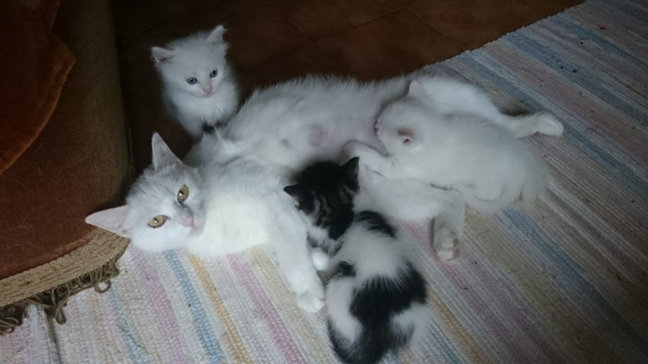 Odrasla bijela mačka je sad sterilizirana, poklanjamo ju također s mladim mačkama ili posebno (netko ju je bacio u ulicu dok je nosila mačiće).