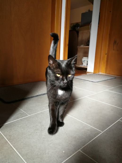 Dolutala nam je početkom ljeta 2018. g., premršava i u strahu. Počeli smo ju hranit i polako se pripitomila.