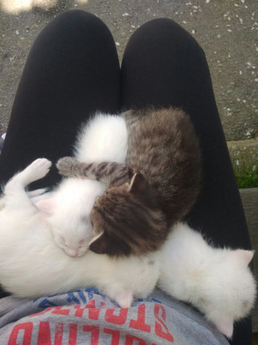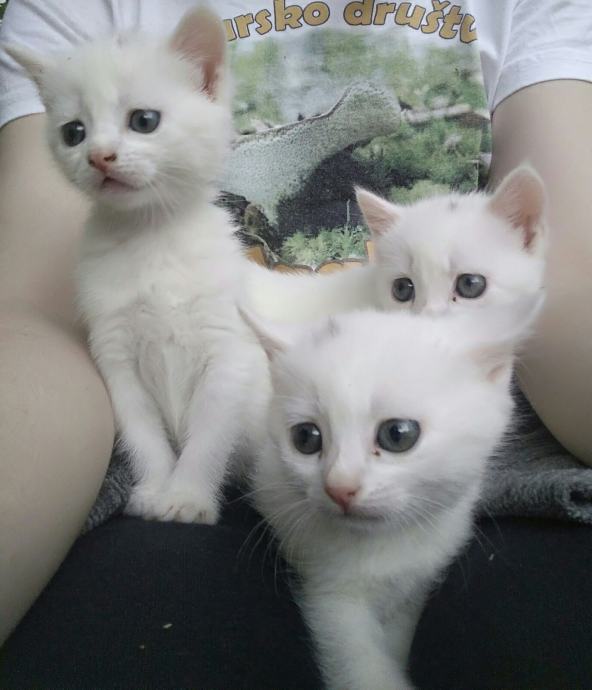 Poklanjam 4 male mačke. 3 bijele su ženske, a tigrasti je muški. Mačke su stare 4 tjedna i za tjedan-dva će biti spremne za odlazak u novu obitelj. Mace su jako umiljate. Ako želite pružiti dom kojoj ili znate nekoga tko želi, slobodno nazovite na broj 099 590 6200. Mačke se nalaze u Krapinsko-zagorskoj županiji, ali za dostavu prema Zagrebu se možemo dogovoriti.