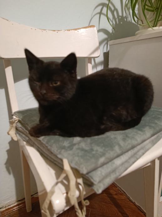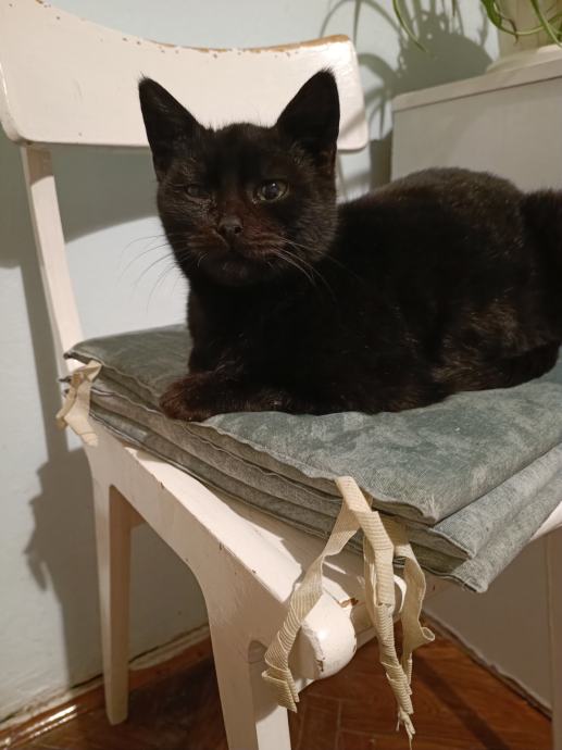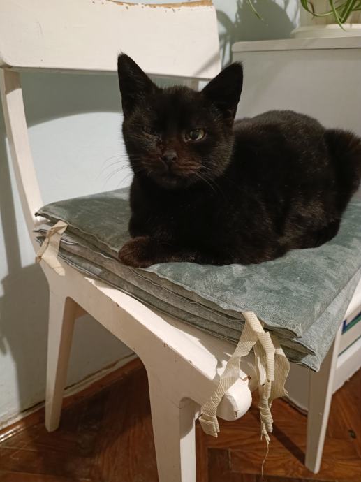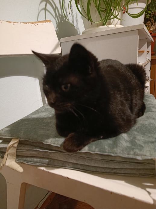 Poklanjam crnu kastriranu jednogodišnju mačku, naučenu na pijesak, suhu i mokru hranu.