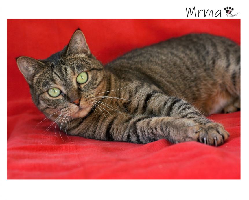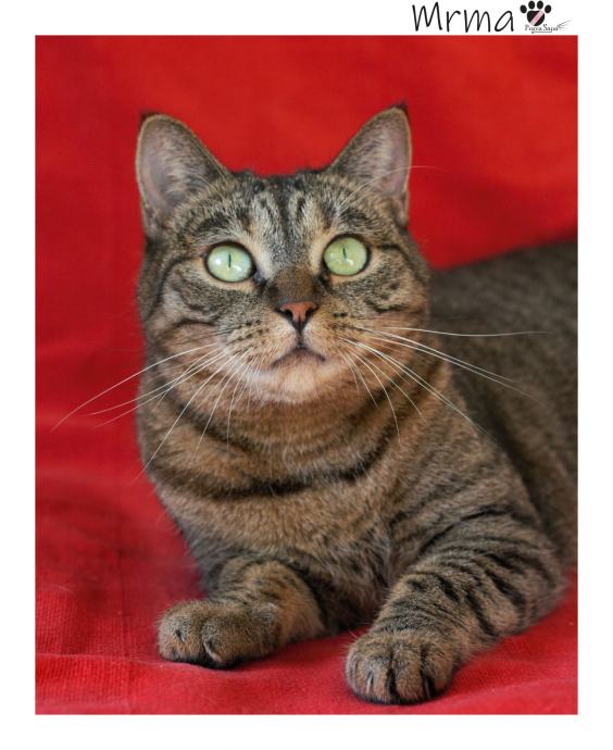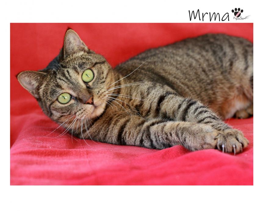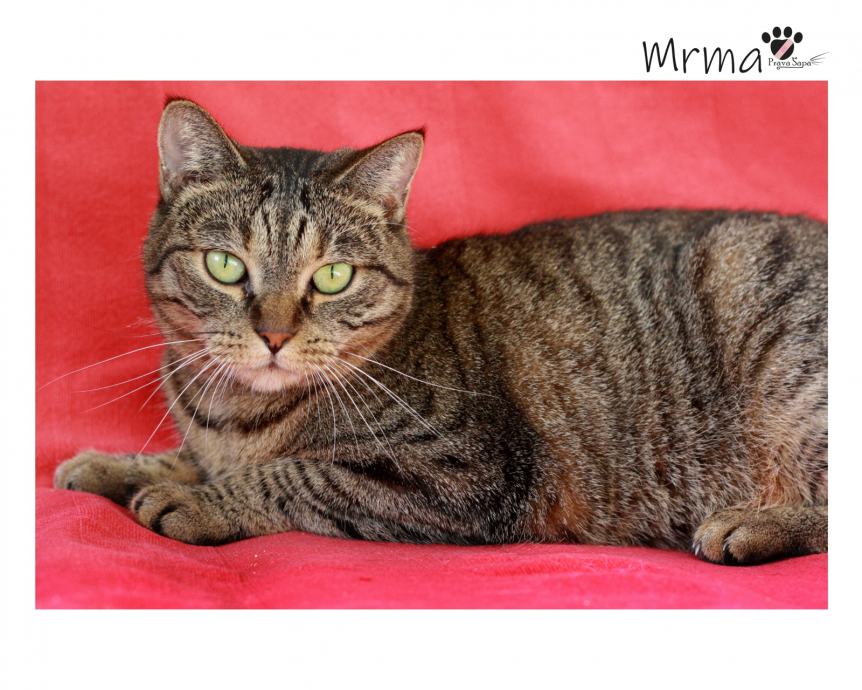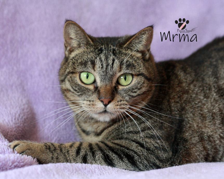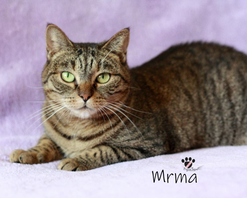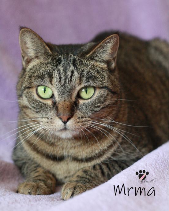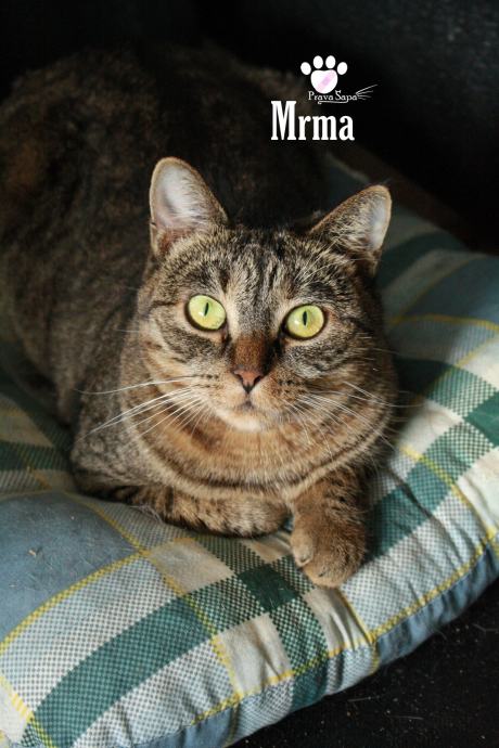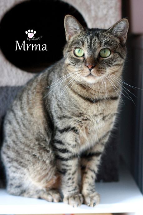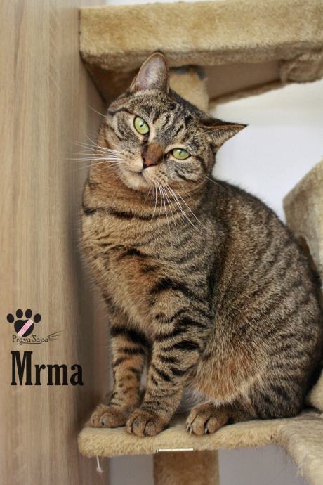 Međutim, Mrma je rođena na ulici i tamo je živjela većinu svojeg djetinjstva, stoga je na prvu plaha s nepoznatima i trebat će joj malo vremena za prilagodbu. Sa svojom Tetom čuvalicom se jako voli maziti . Na poziv i tepanje uvijek se javi sa najslađim mrrrrr! Nije preaktivna mačka, povremeno se voli poigrati.