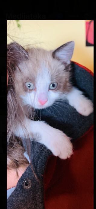 Udomljujemo predivnu mačku boje cappuccino mješana sa Ragdoll, jako je umiljata i mazna, voli spavati na ramenu kao papiga. Naučena na pijesak, očišćena od parazita. Stara je 3,5 mjeseca. Uz manju naknadu udomljujemo u dobre ruke.