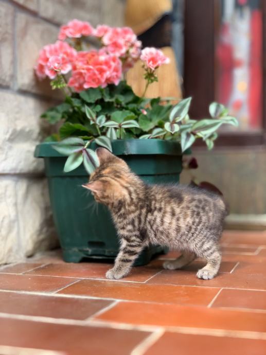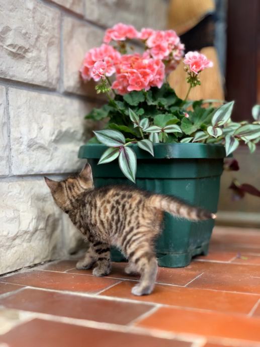 Prekrasna mala maca traži dobre ruke za udomljavanje. Maca je stara 7 tjedana, tigrasto sivo bijele je boje sa nijansama žute i jako je zaigrana,