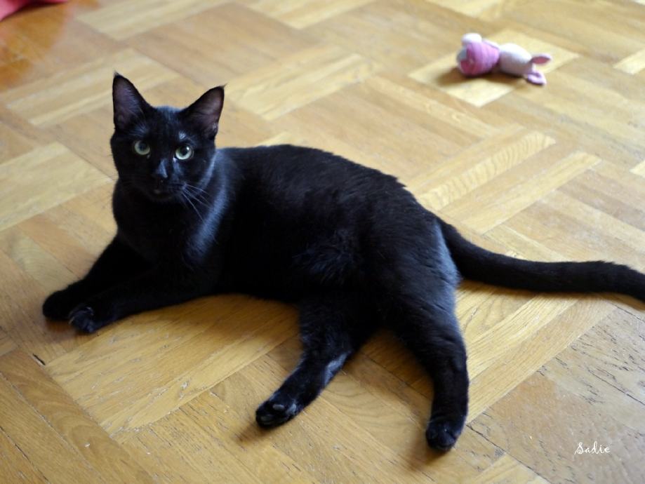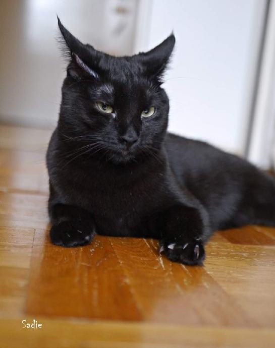 Sadie sam pronasla sa svježe smrskanom prednjom lijevom nogom. RTG je pokazao da se radi o metku. Zahvaljujući svakodnevnim odlascima veterinaru u trajanju od 4 tjedna, noga je spašena. Koristi ju normalno. Jedini hendikep koji joj je ostao je da ne može uvući pandže, što joj ne smeta pri kretanju.