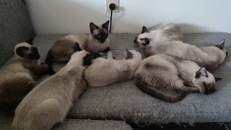 Poklanjam 10 sijamskih mačaka, 4 odrasle (3 ženke i 1 mužjak) i 6 mladih