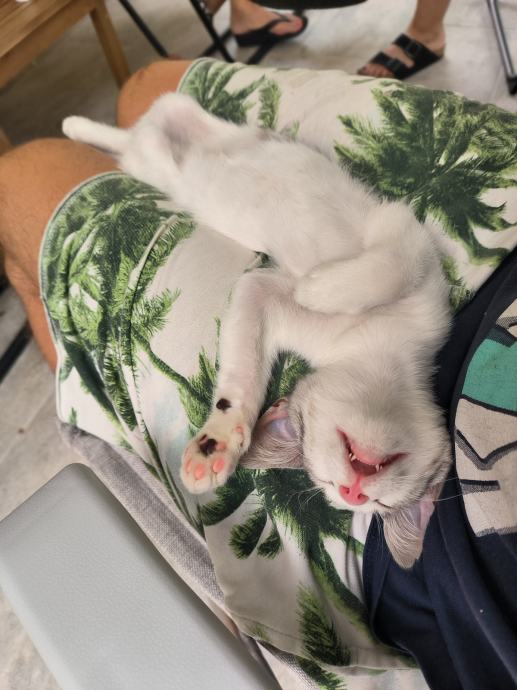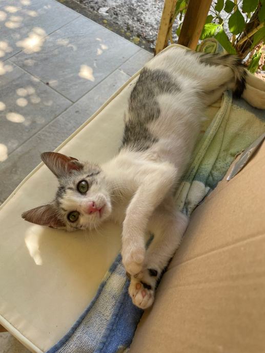 Malu macu smo našli na Pelješcu, i pripitomili. Super je, jako zaigrana, ali kad se izigra jako je mazna. Zovemo ju Ljubica Zubica, jer je voljela gristi kad je bila manja.