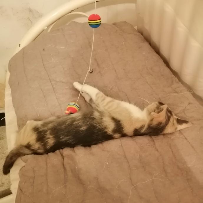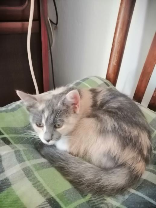 Trobojni mačić, oko 10 tjedana star, ženka, zdrava, razigrana, veterinarski pregledana, očišćena od unutarnjih i vanjskih parazita, mazna, naučena na pijesak, jede samostalno mokru i suhu hranu, hitno traži svoj zauvijek dom. Mačić je uzet s ulice, privremeno kod mene ali ne može ostati. Poklanja se osobi koja ima iskustva s macama i spremna joj je pružiti topli dom i puno ljubavi.