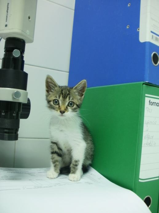 Mače je pronađeno i zbrinuto u ambulanti za male životinje Veterinarske stanice Bjelovar. Žensko je, zdravo, jede i pije samostalno. Koristi pijesak bez problema. Udomitelj ne treba brinuti oko kastracije - kada dođe vrijeme kastrirat ćemo je o vlastitom trošku. Stara je oko mjesec dana. Zainteresirani neka se jave u ambulantu Bjelovar ili na moj mobitel.