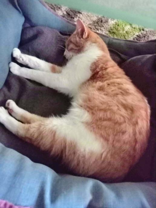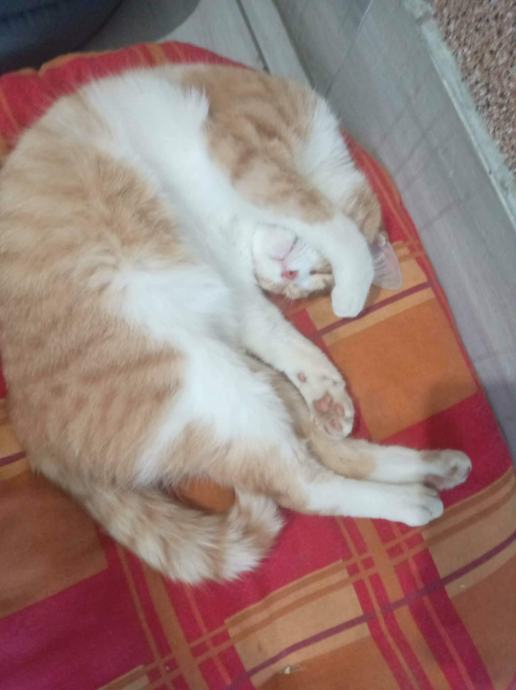 Poklanja se prekrasan žuto bijeli mačić, star 6 mj, umiljat, očišćen od parazita,te kvalitetno hranjen.