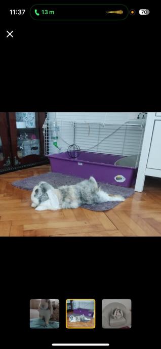 Udomljavamo ovnolikog zeku starog 3 godine. Velika je maza i voli društvo ljudi. Doniramo veliki kavez, hranilicu, boce za vodu, wc, slamu, češalj, noktaricu, kesu hrane i pelete za wc.