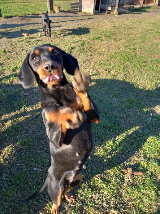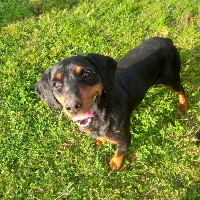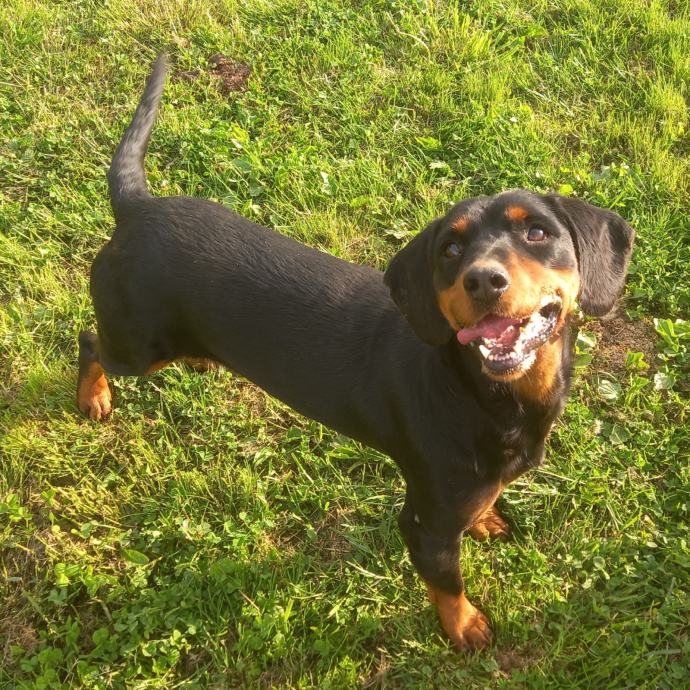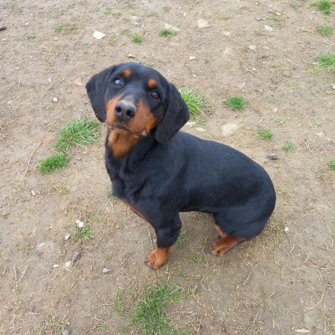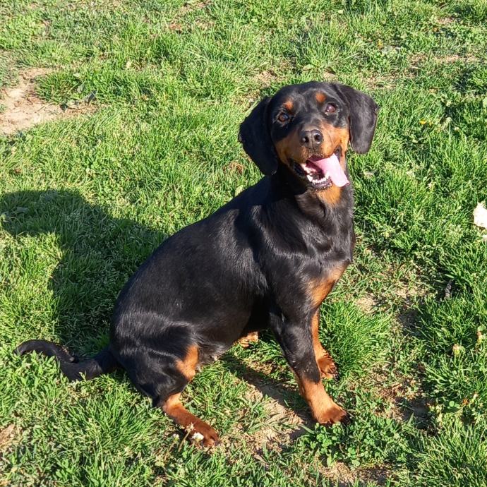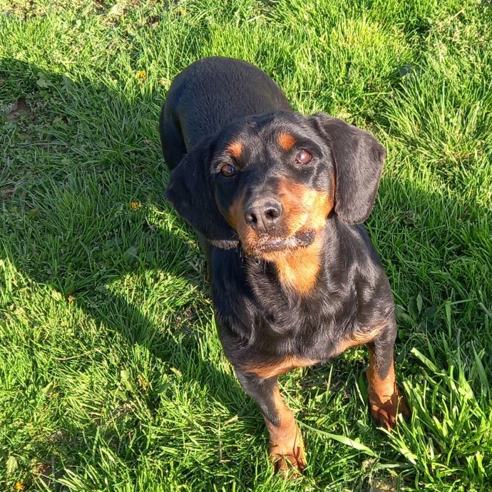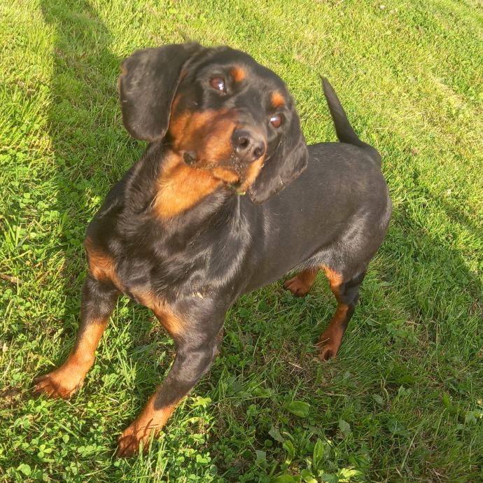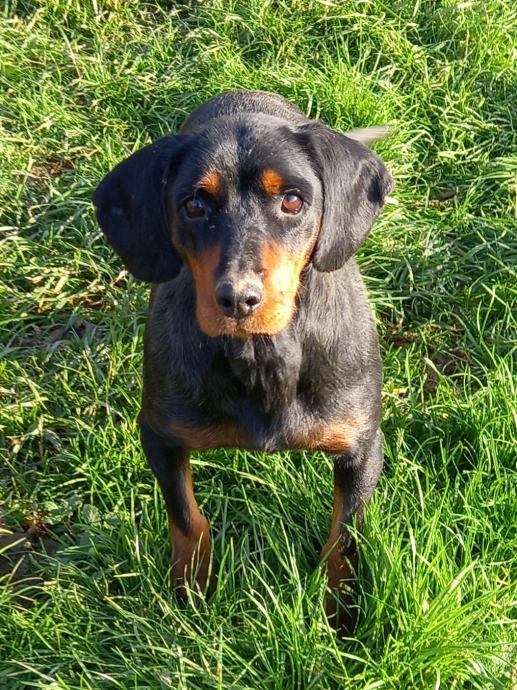 Abra je mala kujica u tipu jazavčara. Pronađena je na ulici skotna, kod nas se okotila, štenci su odrasli i sv su udomljeni, a sad je red da i njoj nađemo novi dom.
