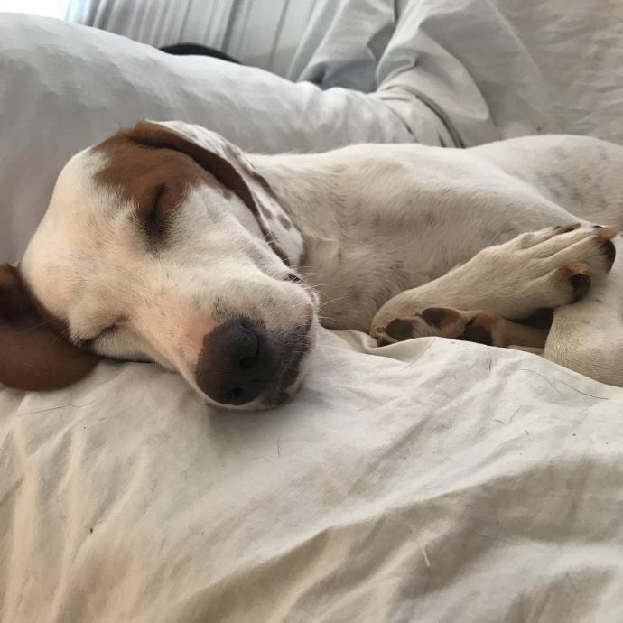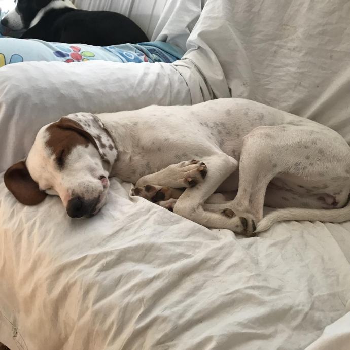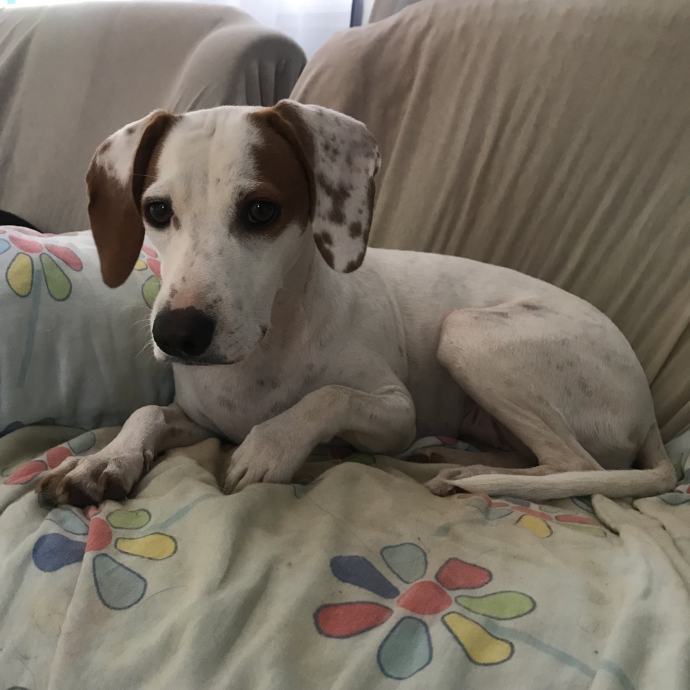 Početak priče o Bimbi za nas je trenutak kad naša volonterka stiže u svoju vikendicu i već prvog dana ugleda mladu, preplašenu i izgladnjelu istarsku gonicku, krcatu krpelja kao grozdovi.